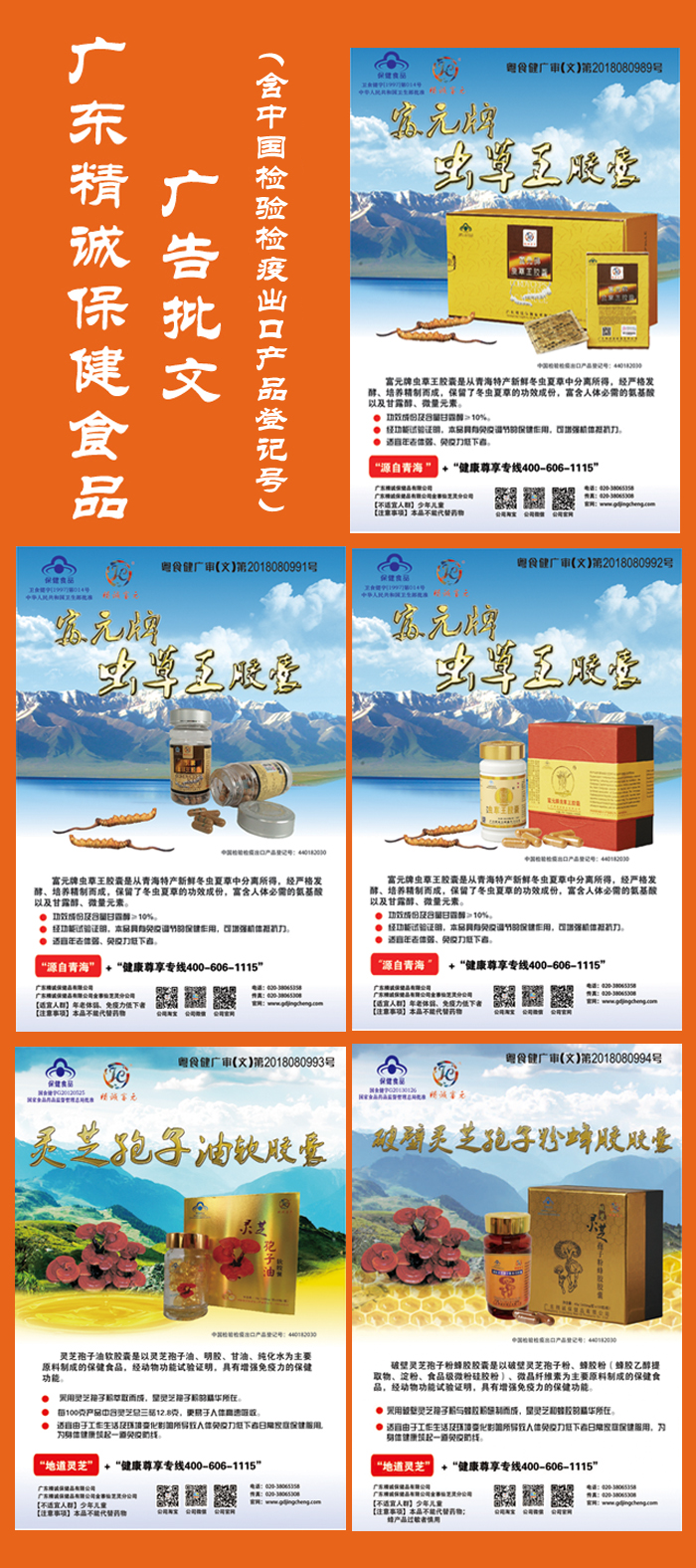 广东精诚保健品有限公司产品广告批文(含中国检验检疫出口产品登记号)