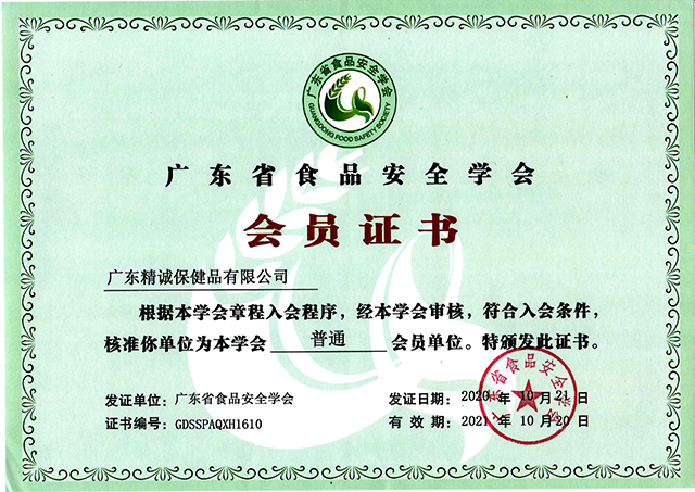 广东省食品安全学会会员证书